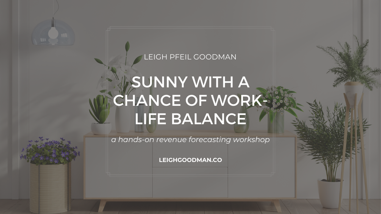You'll get a copy of my revenue forecasting spreadsheet (the one for which my 1:1 clients pay big bucks!) so that you can continue to accurately forecast your revenue streams well beyond the end of the workshop.